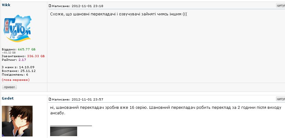 Ти не плутай сайти, де роблять субтитри, з сайтами, де їх читають. Зайди на російські іміджборди, там між словами "русабер" і "шматок лайна, тупа мавпа з клавіатурою, що не вміє ані писати, ані читати" ніхто різниці не бачить, і є на те причини. Тут до тебе ще відносно добре ставляться.